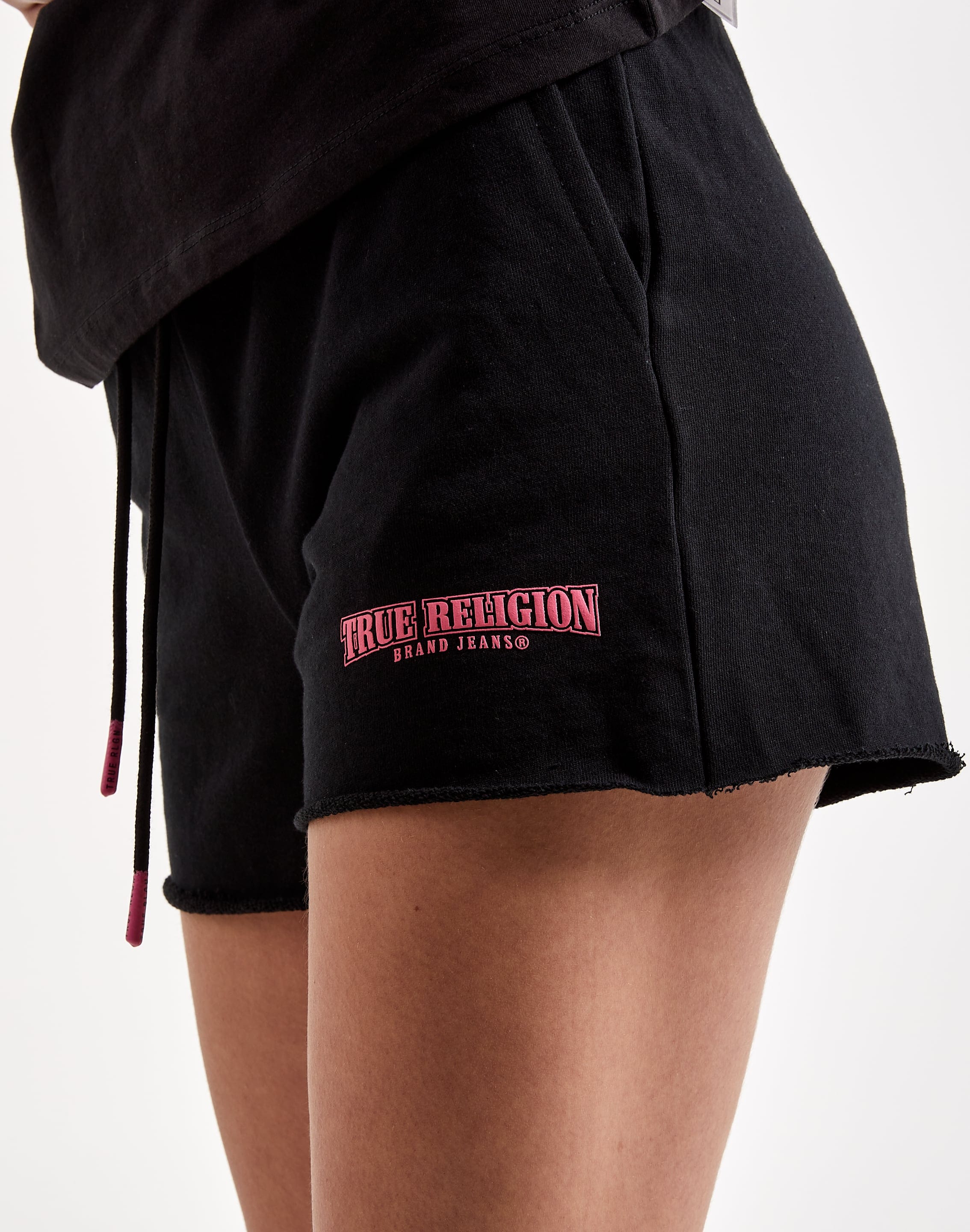 Keep it comfy in the Logo Sweat Short. Designed from a cozy cotton blend, this women's short features an elasticized drawstring waistband and side pockets. Finished with a logo detail at the cut off hem.