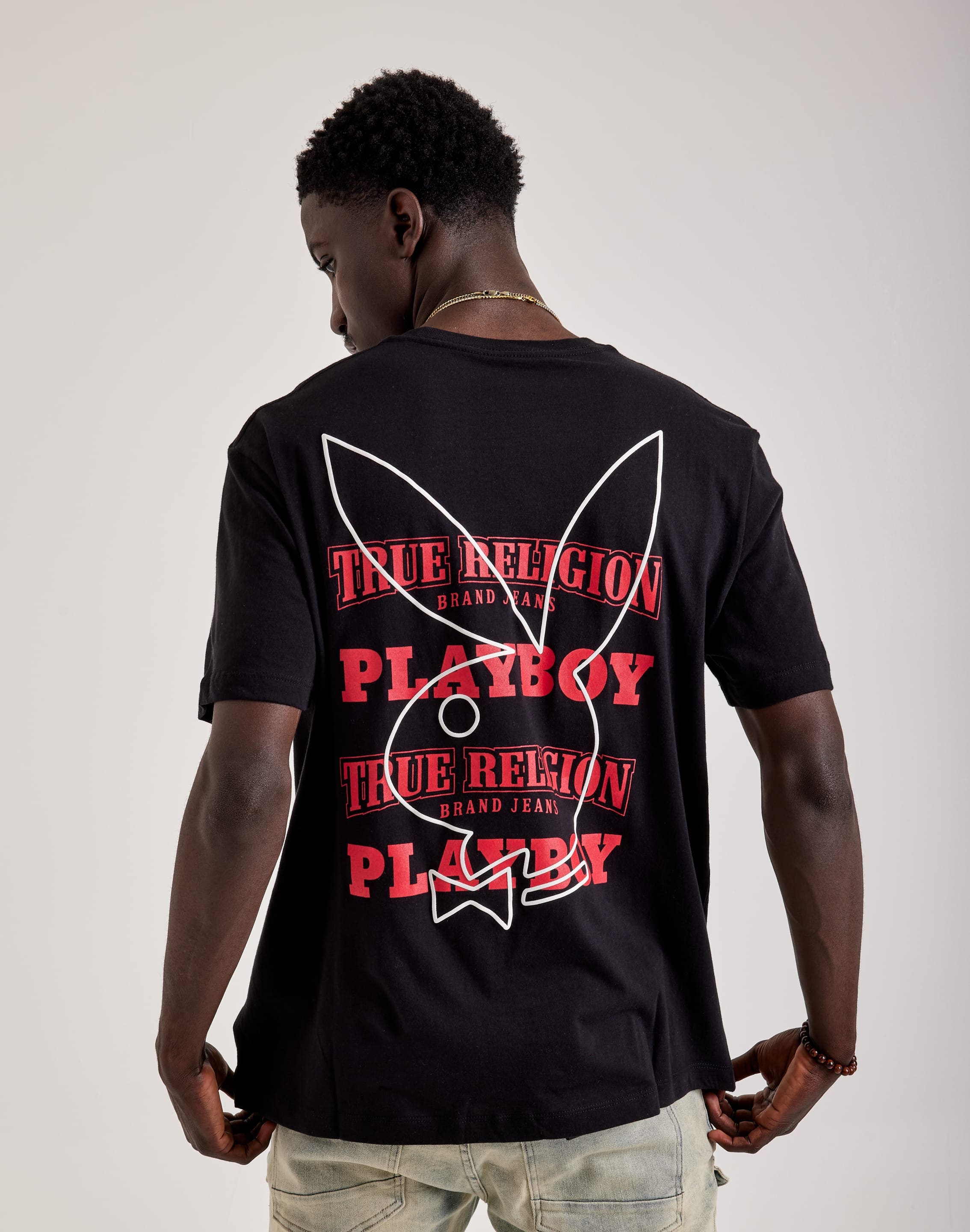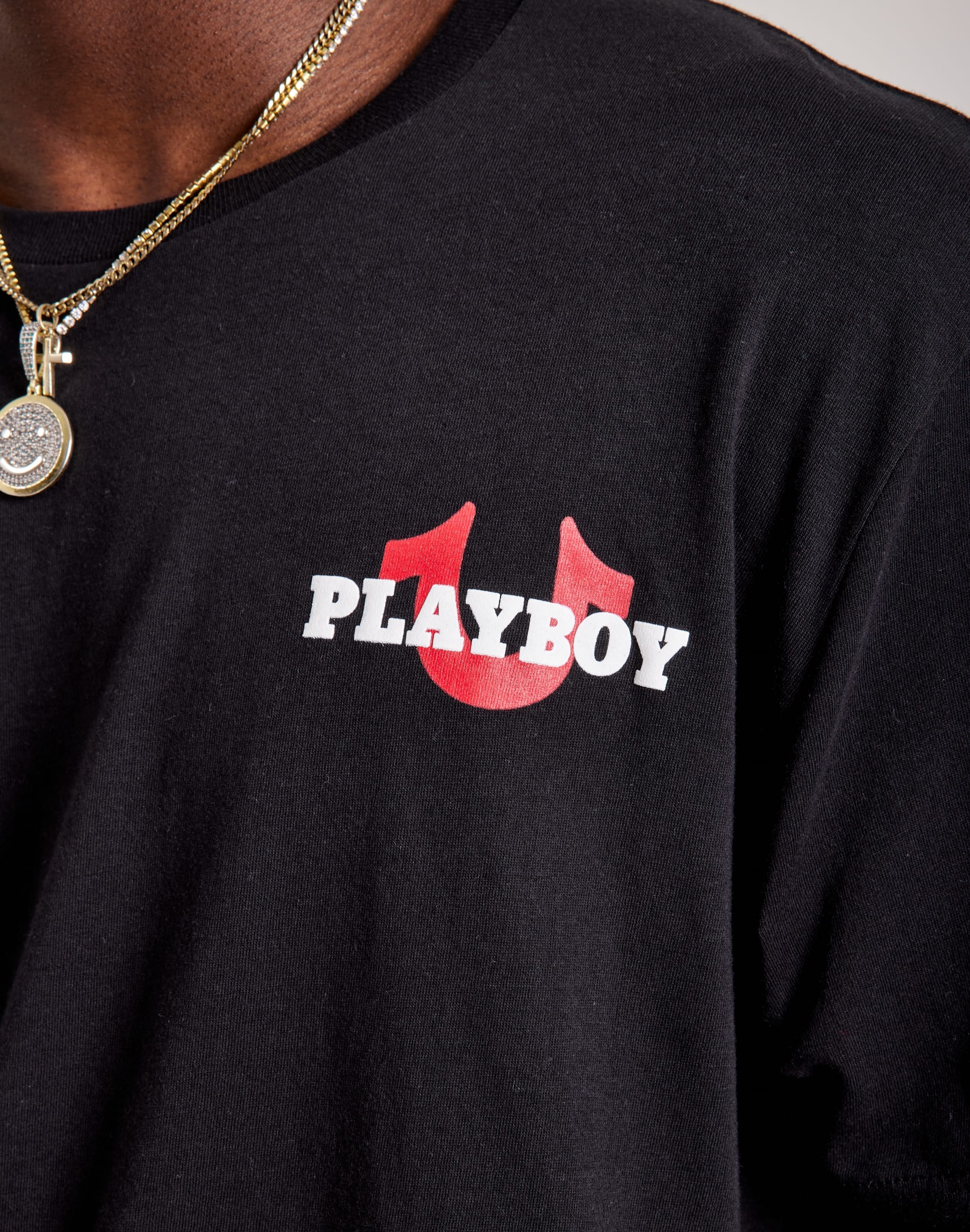 True Religion and Playboy have come together to bring you a new collection. This Playboy Graphic Tee is made with comfortable cotton, has a relaxed fit, and features clean mash-up graphics.