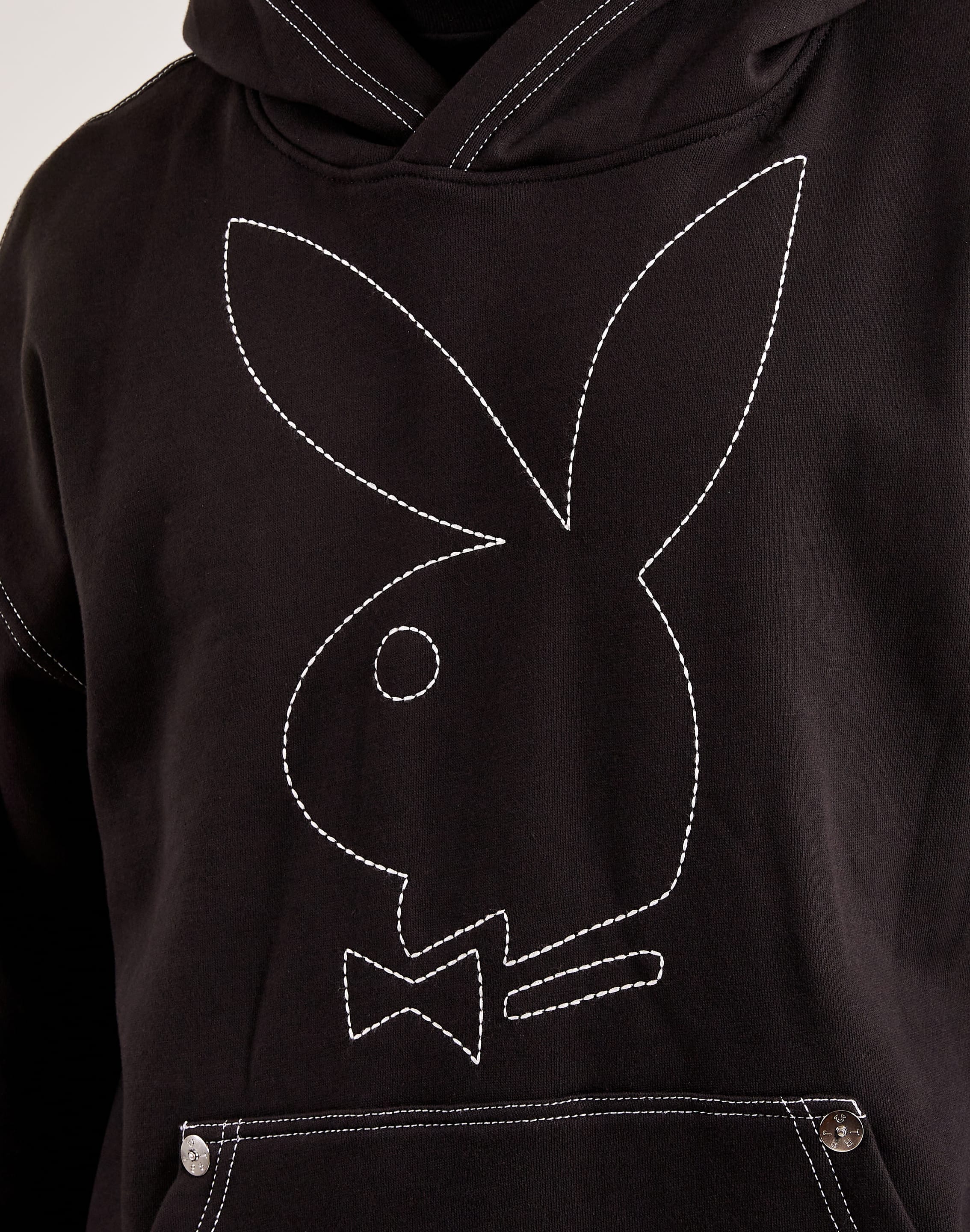 True Religion and Playboy have come together to bring you a new collection. This Playboy Pullover Hoodie features clean contrast stitching and a prominent Bunny logo graphic.