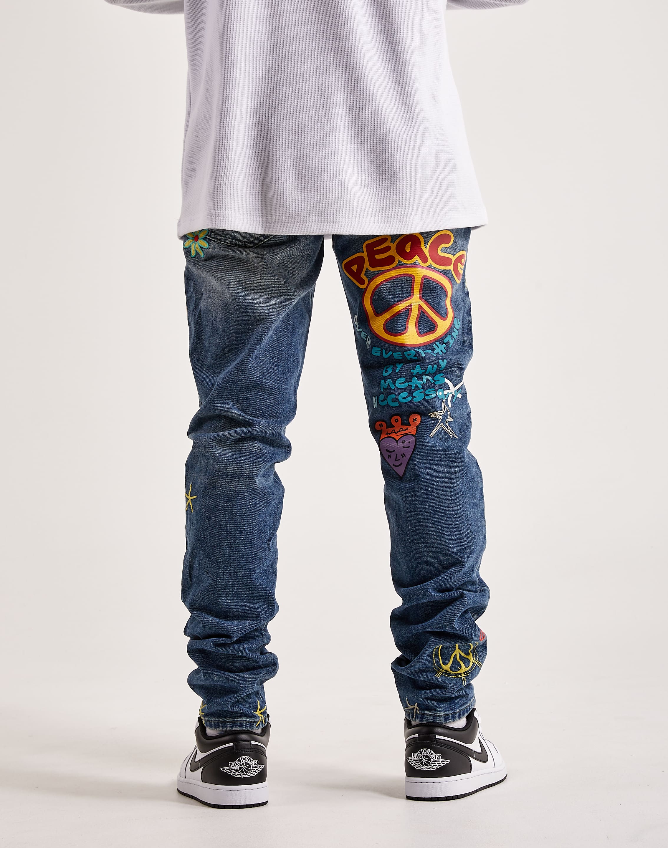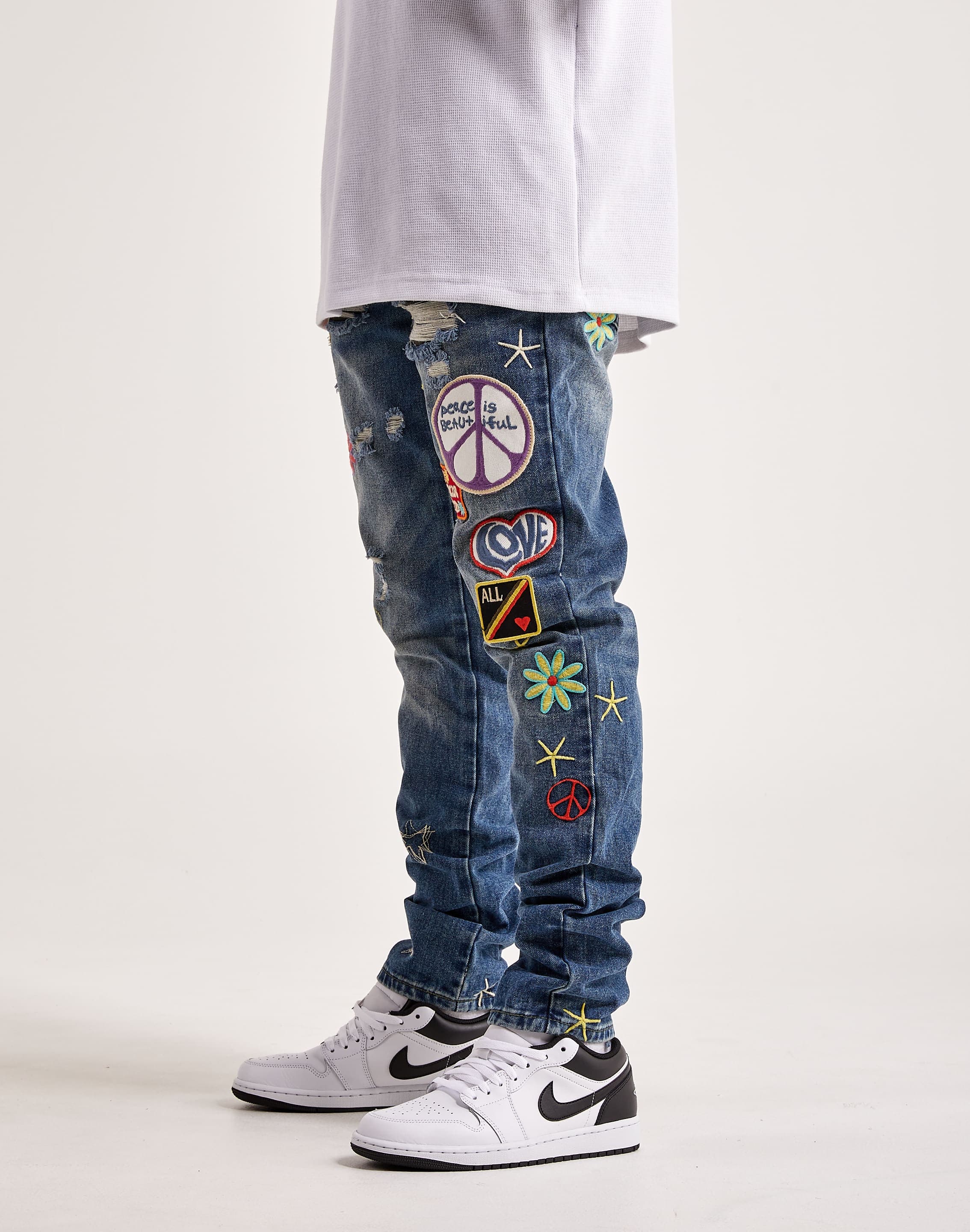 The vibes are strong with Vic Garcia's new Peace Love Patch Denim Jeans. These men's jeans have a straight fit and feature colorful patches throughout for a stand-out style.